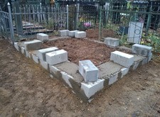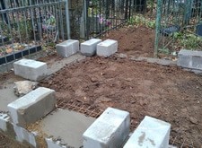 Этап непосредственно самой работы не представлен широким портфолио, работа была тяжелая и не всегда руки доходили до фотоаппарата. Могу лишь сказать, что было очень не просто доставить до могилы столько гранита. Ниже фото создания бетонного цоколя и этап укладки брусчатки.