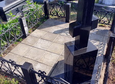 Дожидаемся высыхания бетонной плитки, затем проверяем её на прочность. Покрытие не поддаётся внешнему воздействию, а значит цемент успешно застыл и плитка надёжно зафиксирована на могиле. Фотографируем окончательное состояние места захоронения.